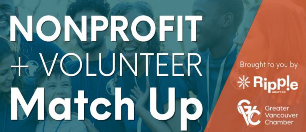Ripple Impact NW and the Greater Vancouver Chamber have partnered to bring together two vital components in our community: nonprofits and volunteers. During this speed networking event, potential volunteers (like you!) will meet with and learn about 15 different nonprofits in our community – including the various ways to volunteer. If you are an individual interested in giving your time and talents to our community, this event is for you!